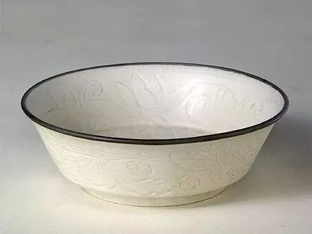 刻划花是定窑特有的装饰风格,所刻线条流畅,飘逸潇洒。此件器物刻划的缠枝莲花在白色釉的衬托下若隐若现,反映出宋代陶瓷手工艺的高超水平。