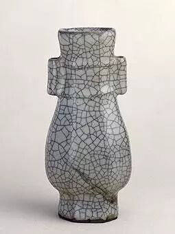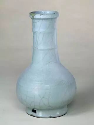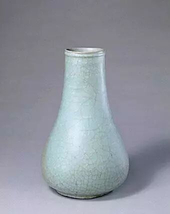 弦纹瓶是典型的哥窑产品,造型端庄秀美,金丝铁线纹片和肩颈凸起的四道弦纹使单一色釉增添了起伏变化,更具韵律感。哥窑传世品不多,主要藏于北京故宫博物院和台北故宫博物院。