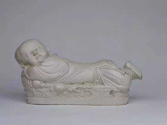 枕是睡觉时垫首用具。在中国古代,人们喜欢使用玉枕、瓷枕,这是由于玉、瓷可以爽身怡神,甚至有“明目益睛,至老可读细书”的作用。瓷枕始创于隋代,盛行于唐、宋、元各代。此件孩儿枕塑制精美,人物形态活泼、悠然,是中国古代瓷器中的珍贵制品。