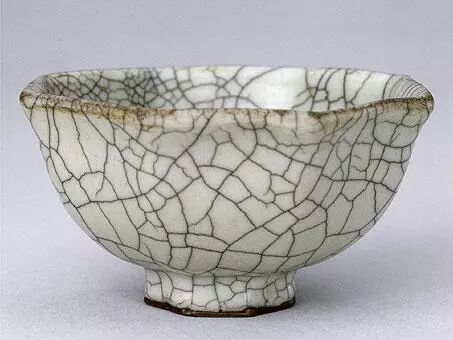 此碗造型新颖雅致,折角棱线分明,线条宛转自然,为宋哥窑器物中的珍品。