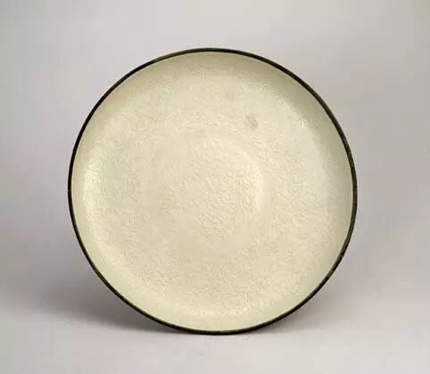 此盘造型规整,是宋代北方地区常见的器形。其釉色匀净,折角线清晰,堪称定窑瓷器中的精品。
