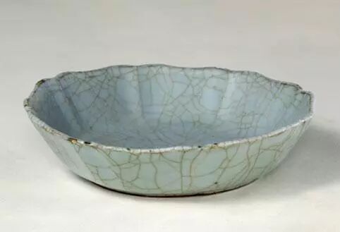 32、官窑葵瓣洗,高4.8cm,口径18.7cm,足径11.2cm。