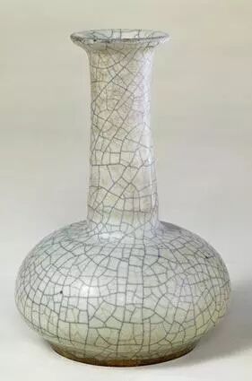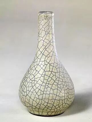 此瓶釉面光亮莹润,通体开细碎鱼子纹,纹片自然美观,别具一格,为典型的哥窑产品。