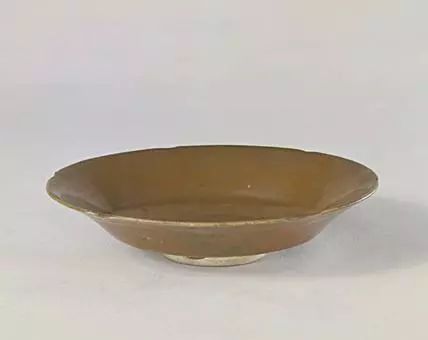 17、定窑紫金釉葵瓣口盘,宋,高3.5cm,口径17.9cm,足径5.9cm。