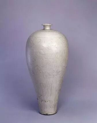 16、定窑白釉刻花梅瓶,宋,高37.1cm,口径4.7cm,足径7.8cm。