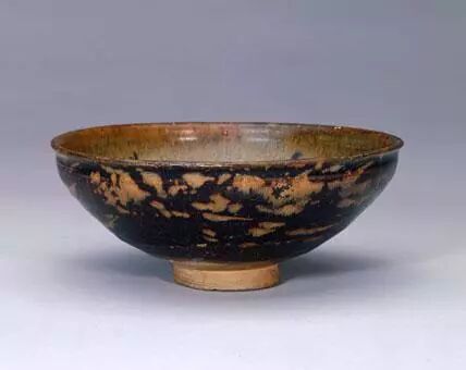宋代饮茶、斗茶之风盛行,黑色茶盏受到斗茶者的喜爱,宋徽宗在《大观茶论》中称:“盏色贵青黑,玉毫条达者为上。”故全国兴起了不少烧黑瓷的瓷窑,其中以福建的建窑和江西的吉州窑最为著名。吉州窑工匠运用民间剪纸的手法,把凤凰灵动飘逸的形象生动传神地展现在这件瓷碗上,新颖别致,极具图案装饰效果。