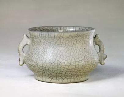 鱼耳炉因两侧置鱼形耳且可用来焚香而得名,是宋代哥窑瓷器中的名品。元、明时虽有仿品传世,但均貌似神离,无法企及原作之风韵。