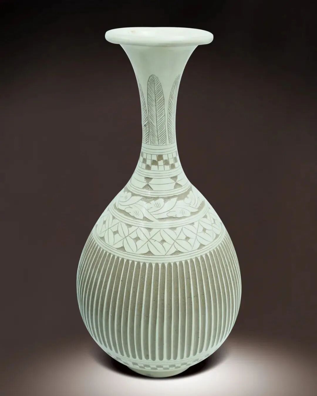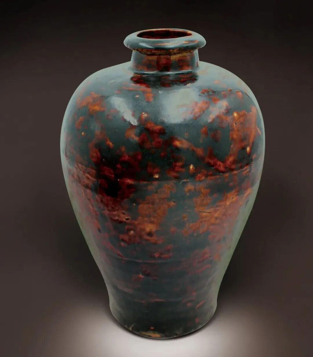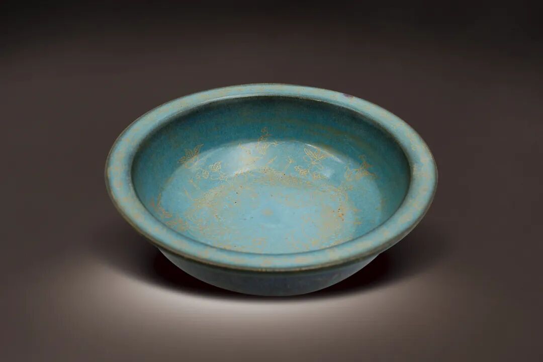 32 清 銅鎏金西洋人物鑲天青釉瓶