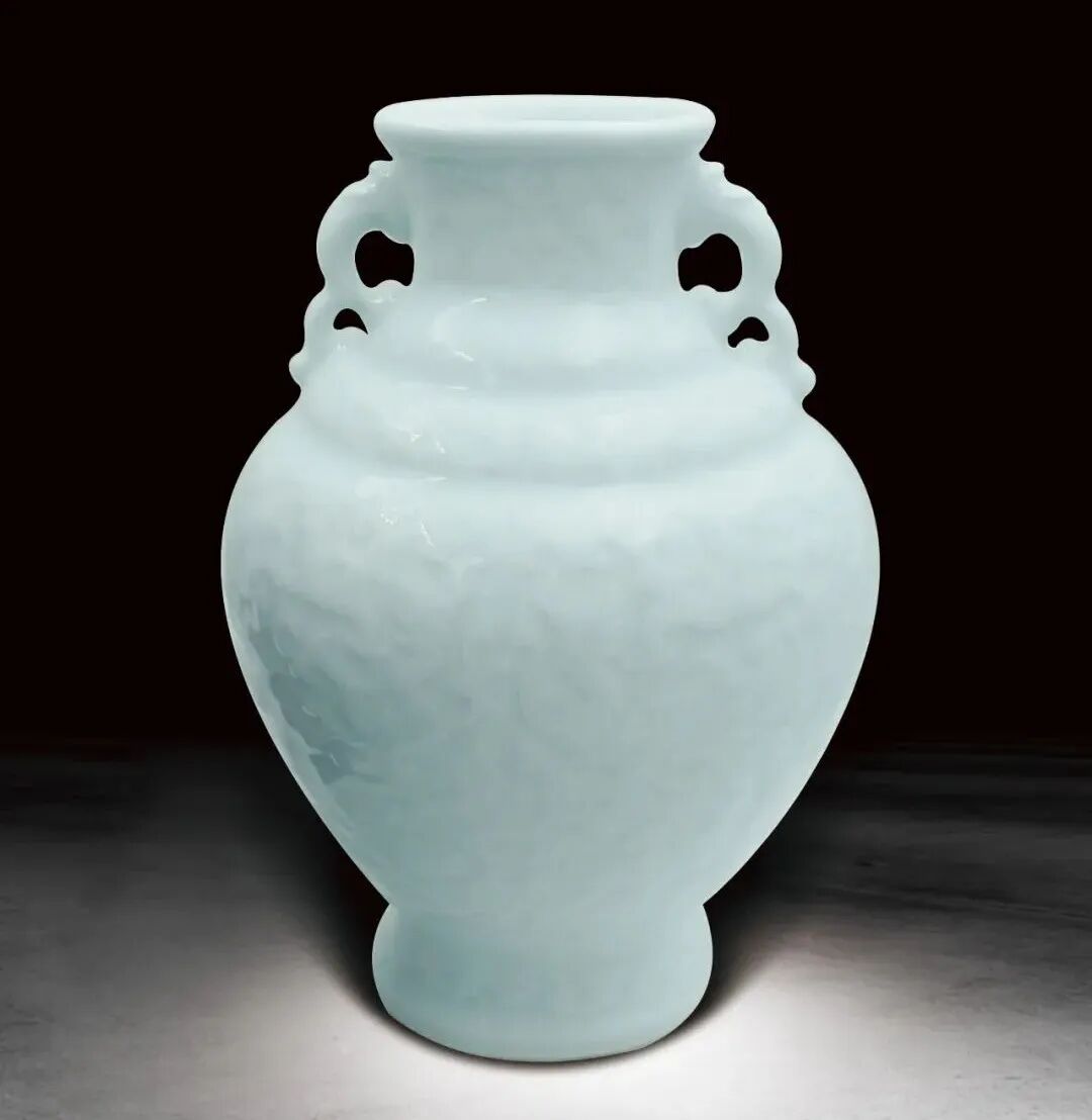 40 清 乾隆窯甜白釉印花夔龍紋雙耳扁壺
