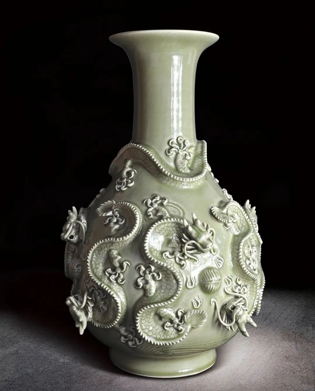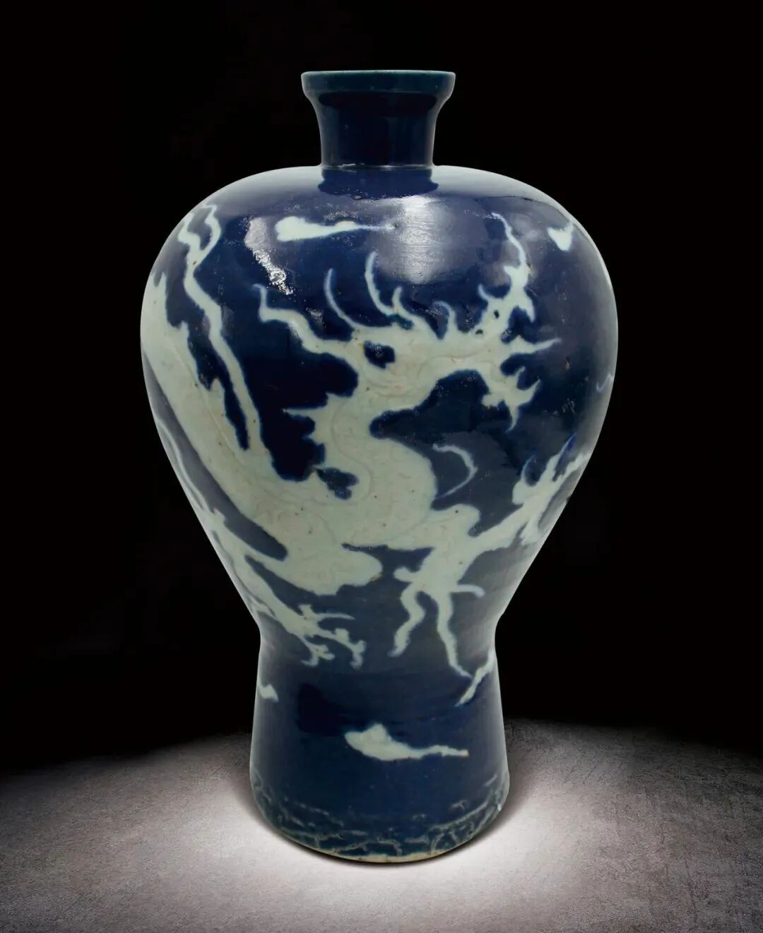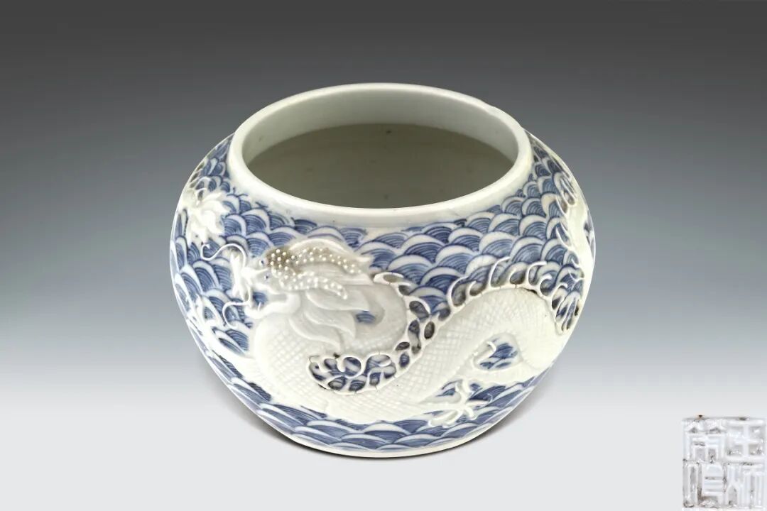 38 民國 王炳榮製青花雕瓷滄海蛟龍紋水洗