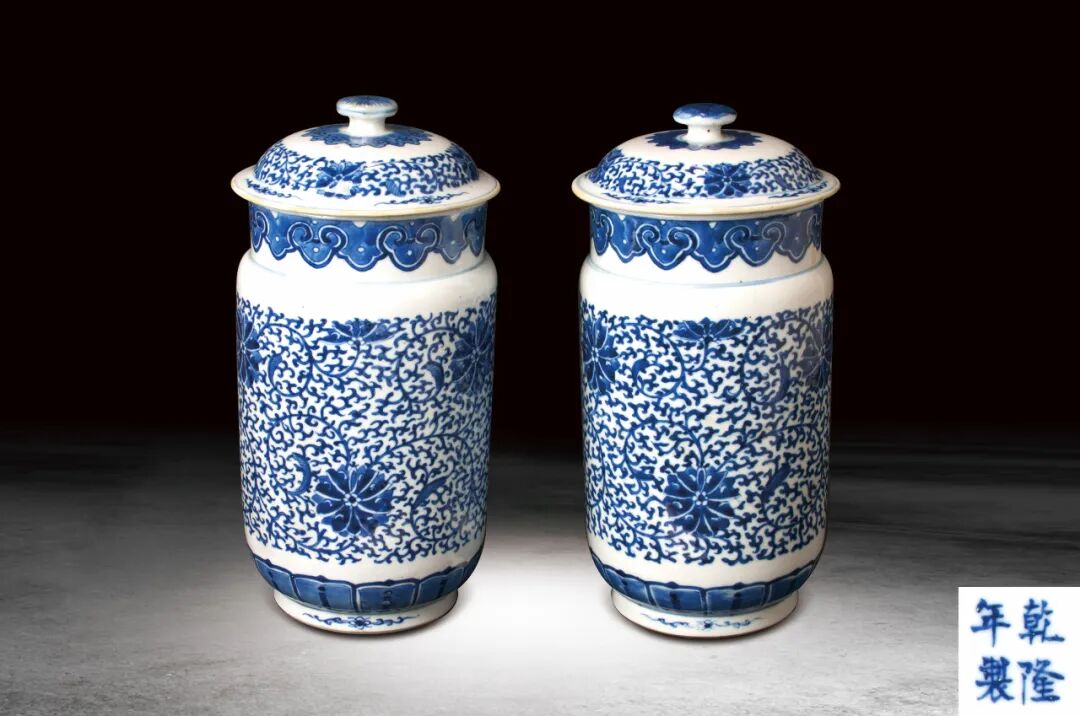 13 清 青花纏枝蓮紋筒蓋瓶一對