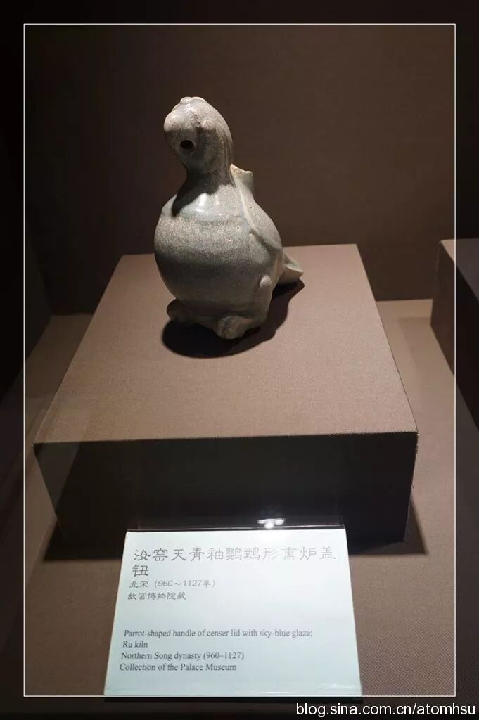 汝窑天青釉鸳鸯钮熏炉盖(残)