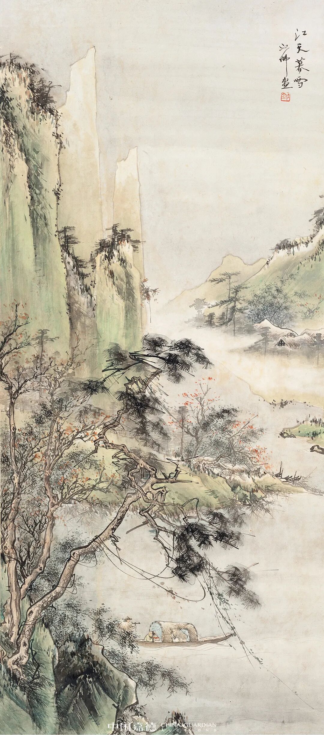胡也佛 江天暮雪