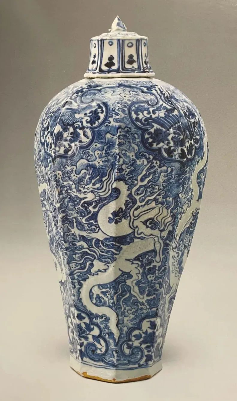 元 青花海水龙纹八棱带盖梅瓶 河北省博物馆藏