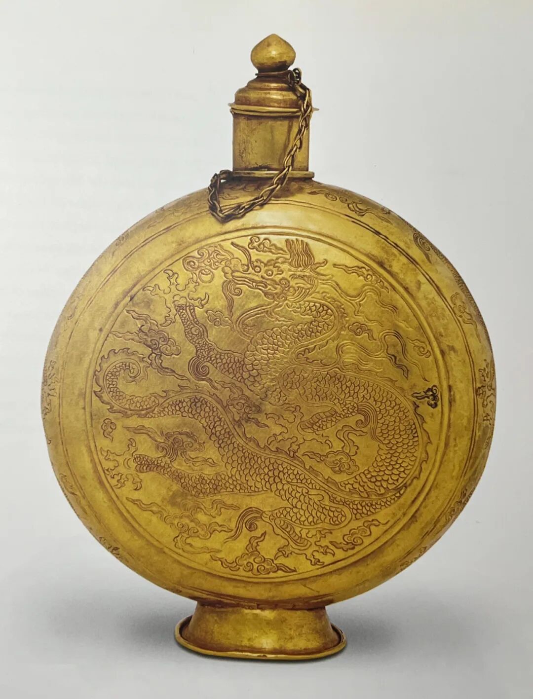 明初 金制刻龙纹扁壶湖北省博物馆藏