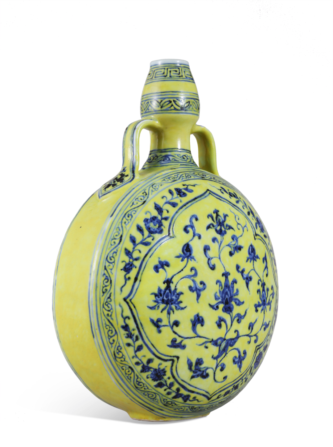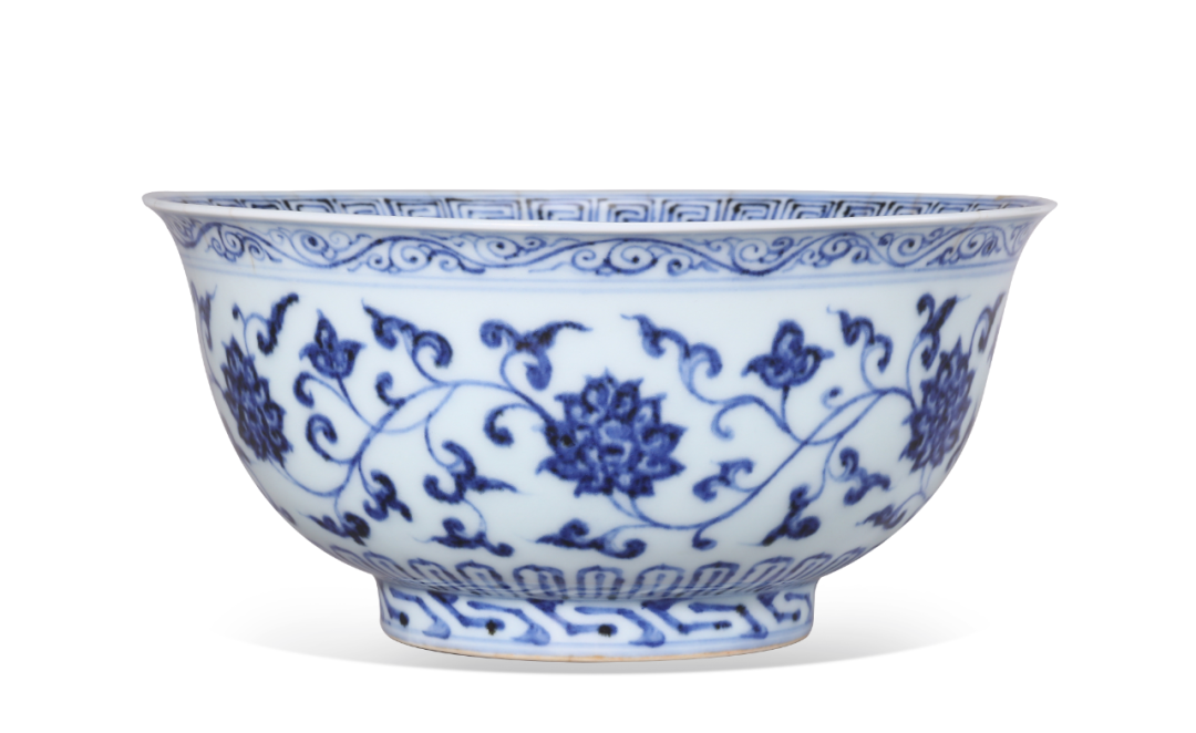 在永宣青花上经常出现的自然的“湮散”(晕散)和“黑斑”现象,是进口钴料在烧制过程中产生的缺陷,但由之产生的浑然天成的水墨淋漓、气韵生动的美感又是后世难以企及之处。要使青花现出美丽的色调,必须使用还原焰,进口钴蓝料在强还原焰下呈色力非常强,但温度过高时线条湮散,而在氧化焰气氛中,即便是上等青料也会变成黑褐色。永宣器物胎釉、用料中的诸多天然成分在御窑厂从氧化焰至还原焰再至中性焰的窑火中幻化天成,再经过无比严苛的拣选制度,方有世上之完整永宣御窑器的传世,识者不可不珍。