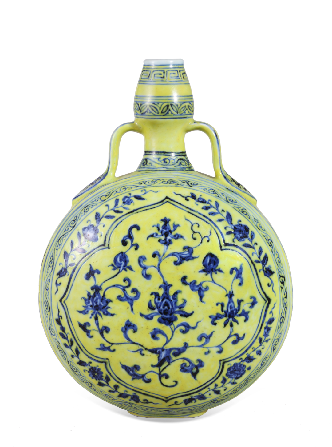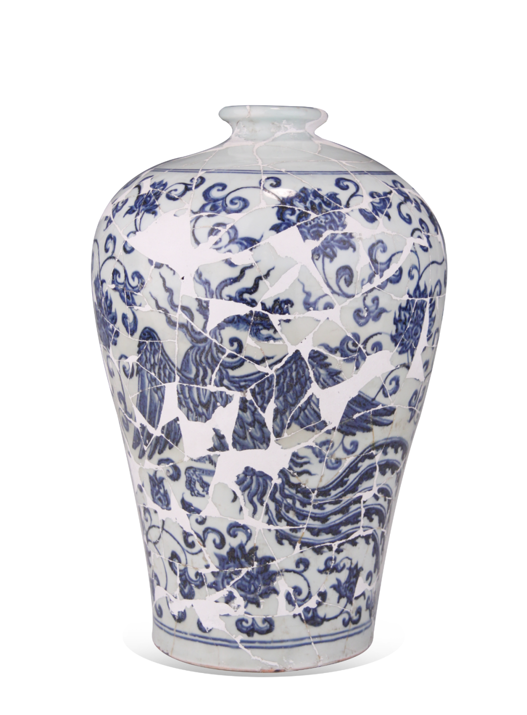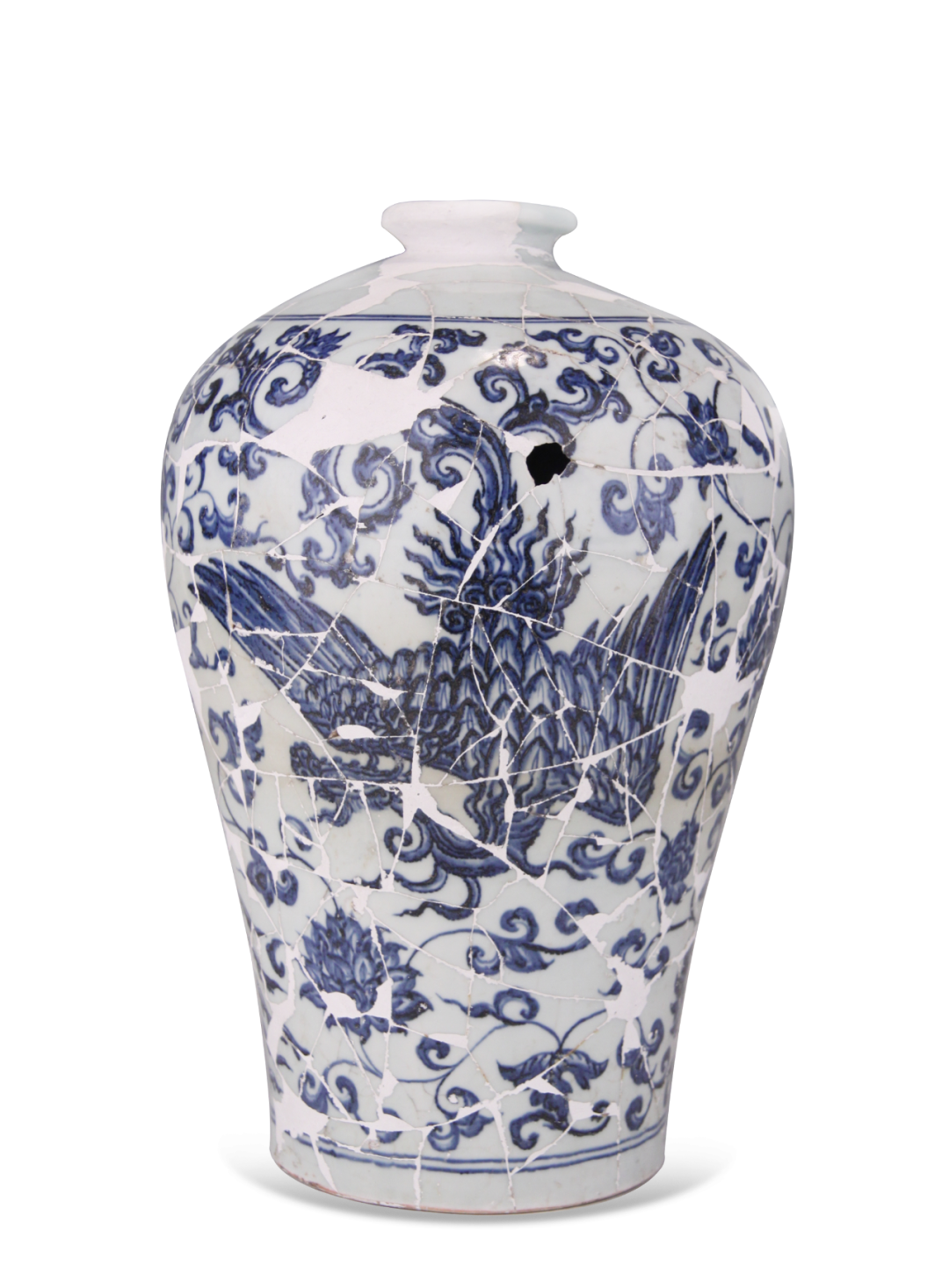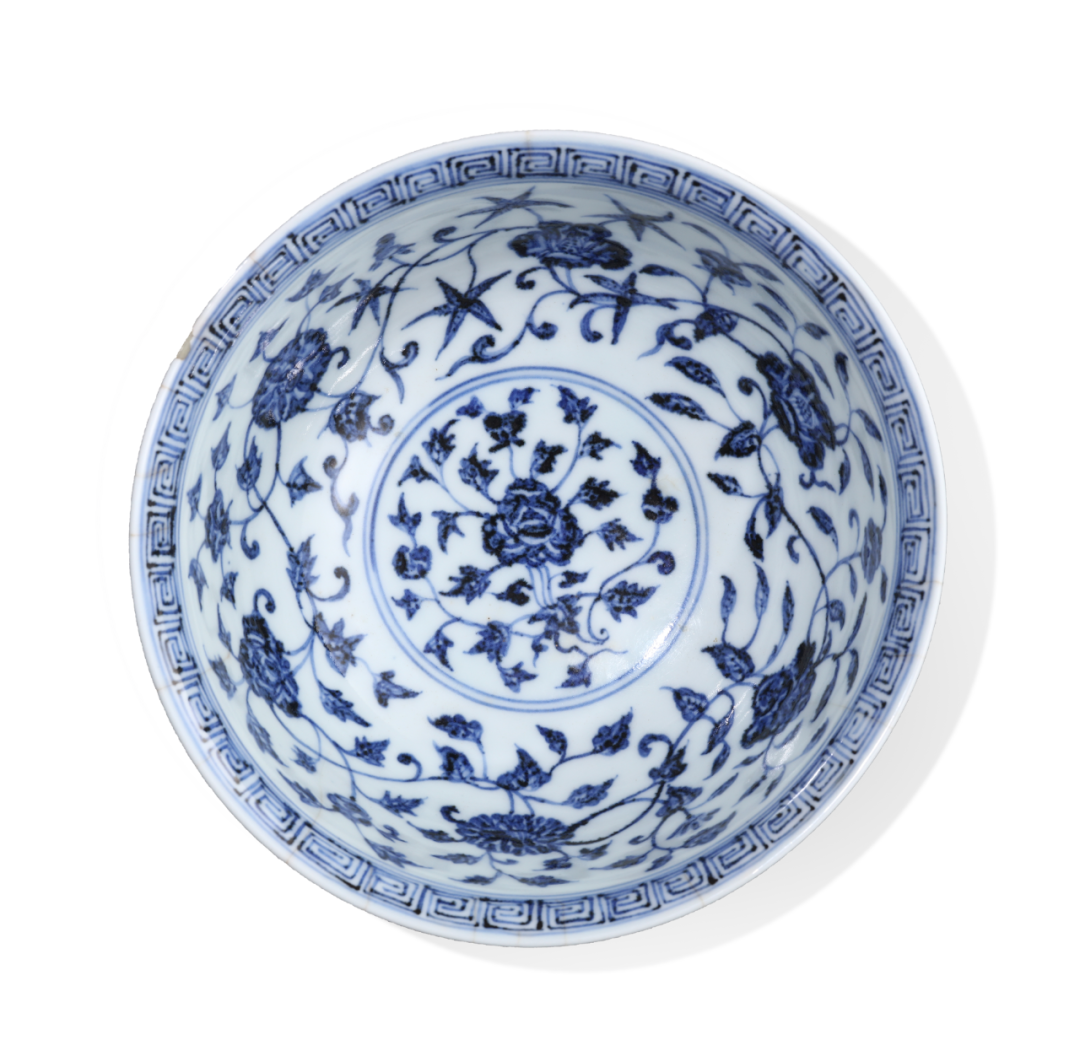 元明之际青花瓷器在原料、技术、纹饰等各个方面,受到中亚、波斯地区釉下彩陶的的影响,与伊斯兰文化有着密切的联系,“明人对于瓷业,无论在意匠上、形式上,其技术均渐臻至完成之顶点。而永乐已降,因波斯、阿拉伯艺术之东渐,与我国原有之艺术融合,于瓷业上,更发生一种异样之精彩。”(吴仁敬,辛安潮。《中国陶瓷史》,商务印书馆,1936)产自中亚的“苏麻离青”钴料飘洋过海运抵景德镇,最终在中国工匠的毛笔下描绘而成的,既有布局繁密、充满伊斯兰风情的“回回花”图案,也有疏朗有致、蕴含笔墨趣味的花鸟异兽。“高铁低锰”的进口青料给瓷绘带来了不小的挑战,若纯用苏料,发色固然深沉紫妍,但因青料淘洗研磨后仍含有氧化铁微粒的问题,绘制的纤细线条中常有黑色的小点,落笔重处则会使铁元素聚集,形成黑斑;而“低铁高锰”的国产青料在绘制时,发色虽呈灰蓝,但呈色稳定。故实际绘制时,工匠常将进口料与国产料搭配使用。