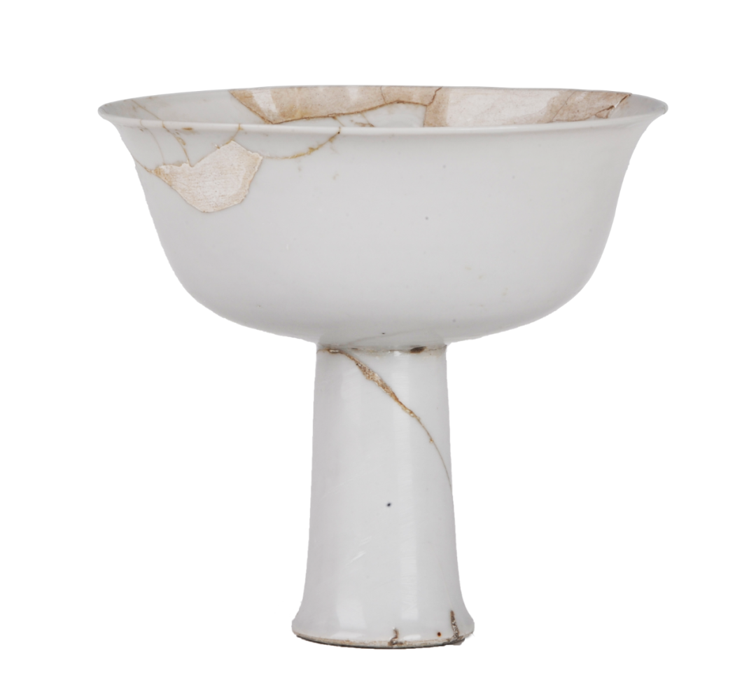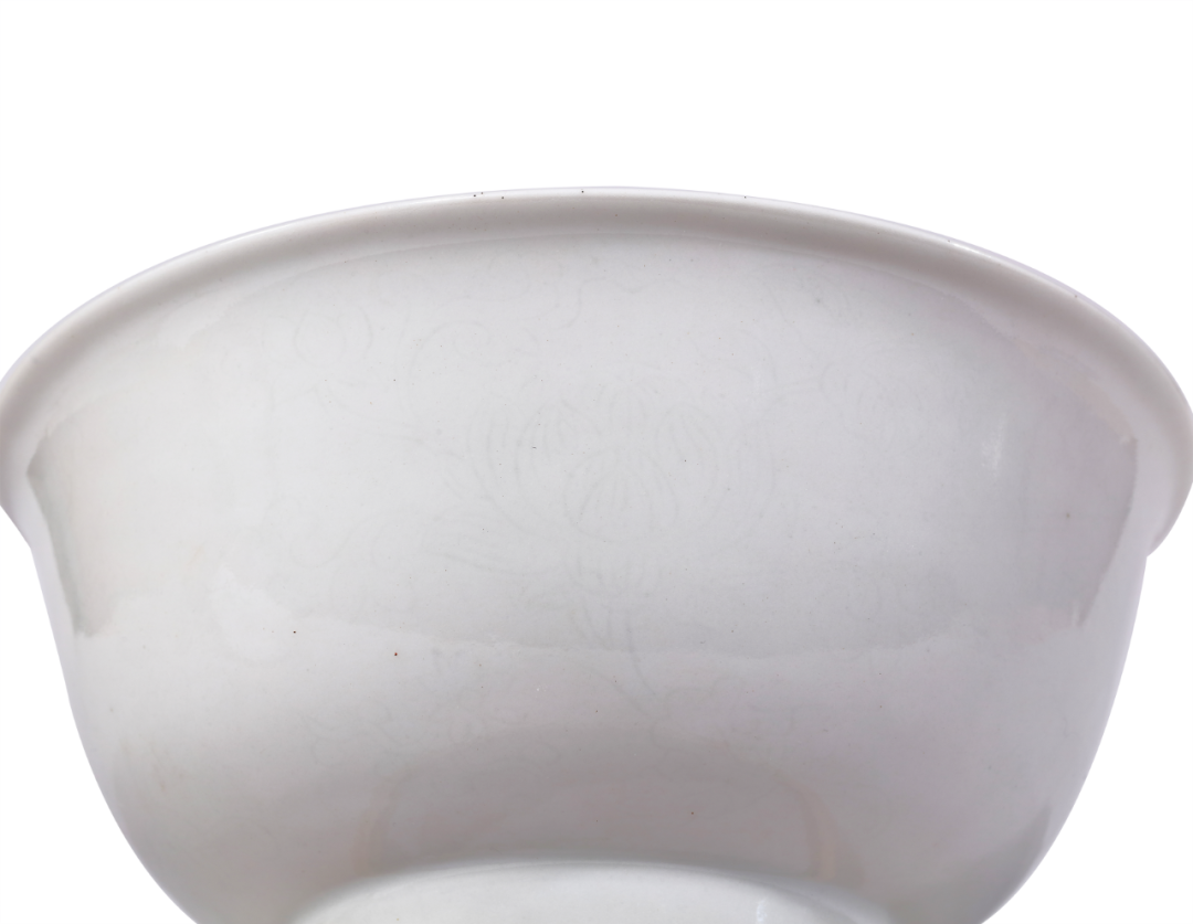 元亡明兴,明永乐一朝,宫廷重白瓷,永乐甜白釉瓷器的诞生,成为划时代的里程碑。其釉色乳白,温泽柔和,于白瓷中形成了独特的风格,与乳浊的元代卵白釉相比更温润,呈半木光,似绵白糖色,给人以绵甜美感。从技术角度分析,当是尽量提炼胎土,降低其中氧化铁的含量,同时釉料配置上只使用釉石,不用釉灰,釉中含有多量的微细残留石英颗粒和一定量的云母残骸,并使用钾石作助溶剂,使得釉中氧化钙含量极低,氧化钾含量较高。“甜白“是中国白瓷制作工艺达到顶峰的标志。