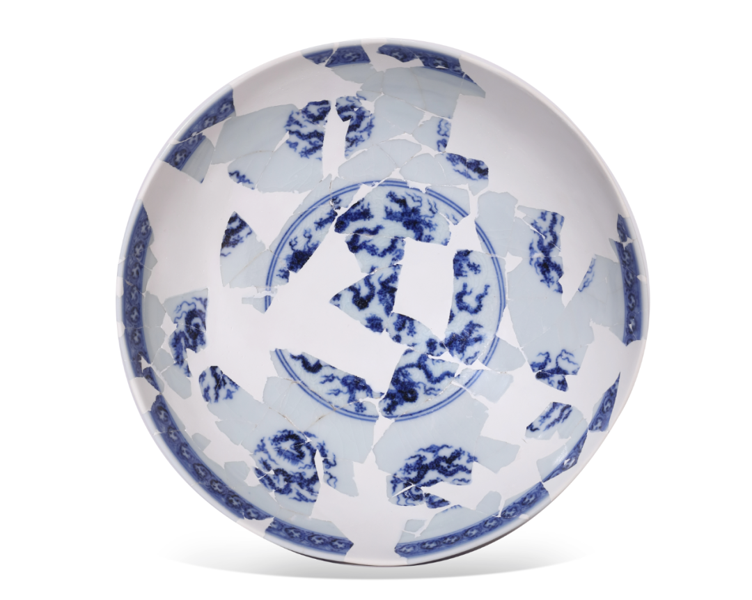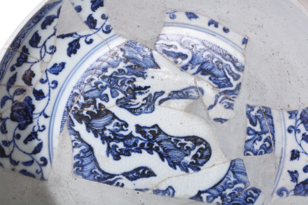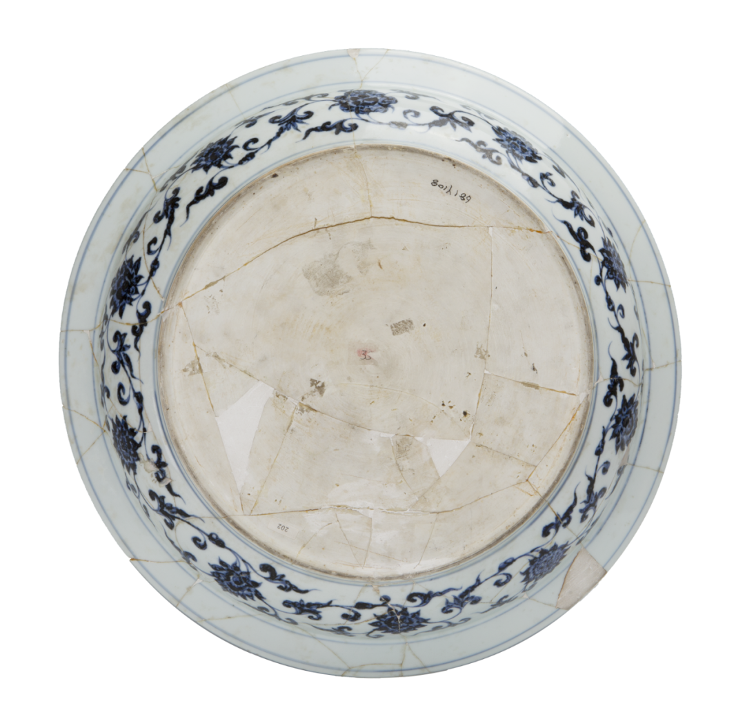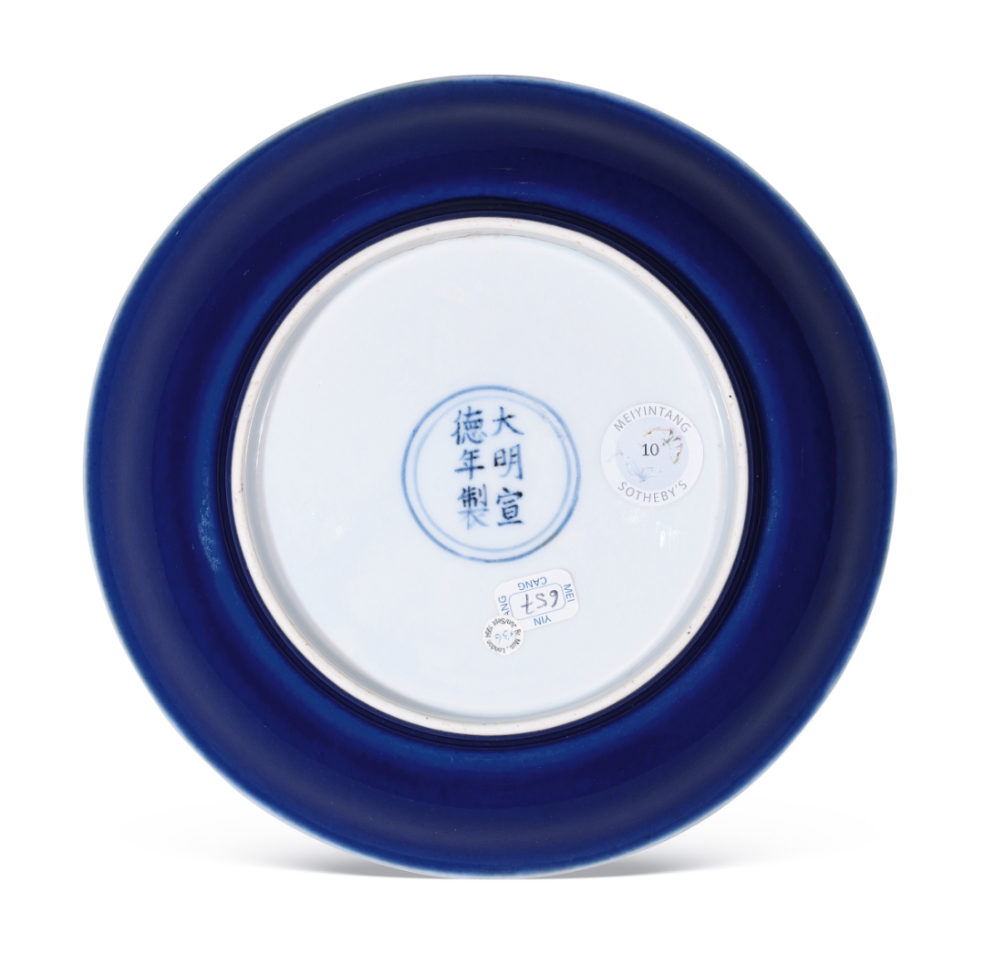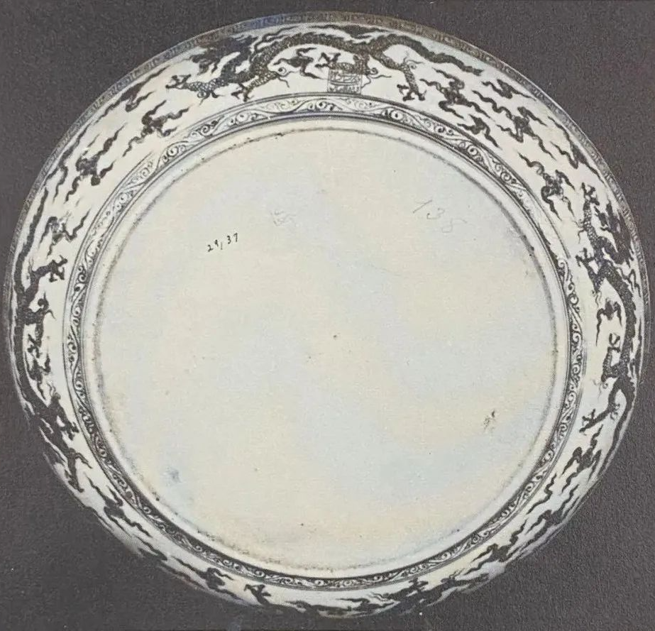 本件丹麦建筑师所罗门·塞伦森旧藏永乐青花白龙盘,除伊朗国家博物馆藏两例,上海博物馆藏一例宣德年款者外,完整器仅此一例。1993年景德镇御窑珠山出土尺寸较小一例(直径28厘米),青花发色较为晦暗,未拣选供御,即行销毁。可见其烧制之难,存世之罕。