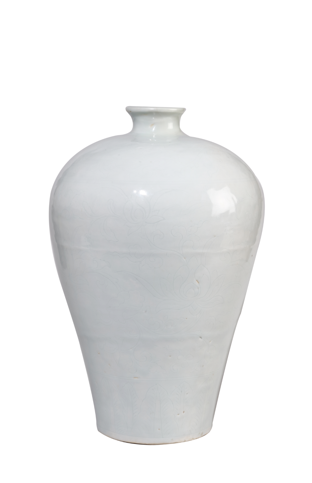 白瓷是以含铁量低及尽可能去除氧化铁杂质的瓷坯,施以纯净的透明釉经高温烧制而成的。白瓷创于中华,所谓“陶成雅器,有素肌玉骨之象焉”,在白度、透光度、烧成温度、吸水率、釉光等方面都接近于现代瓷的标准。据文物考古研究发现,长沙东汉墓中出土灰白釉器物有被认为是“早期白瓷”,尚非真正的白瓷。白瓷烧造技术含量很高,在青瓷基础上窑工逐渐减少胎釉中氧化铁的含量。白瓷源于中国北方含铁量较低的胚土,北齐范粹墓(公元575年)出土器为白瓷的初级阶段,白釉中仍泛青黄。至隋开皇十五年张盛墓(公元595年)、大业四年(公元608年)李静训墓出土器则白度较高,不泛青黄,透影度和釉光均达到了白瓷的成熟阶段。唐代白瓷日益精进,唐朝中叶以来,南青北白的瓷业格局已十分明显,北方邢窑白瓷驰名天下,宋代窑口众多,定窑、湖田窑等牙白釉器、青白釉器更是闻名遐迩。元朝以来,随着景德镇陶艺的进步,色泽愈发纯正的枢府卵白釉、永乐甜白釉相继出现,在陶瓷史上书写下灿烂的篇章。