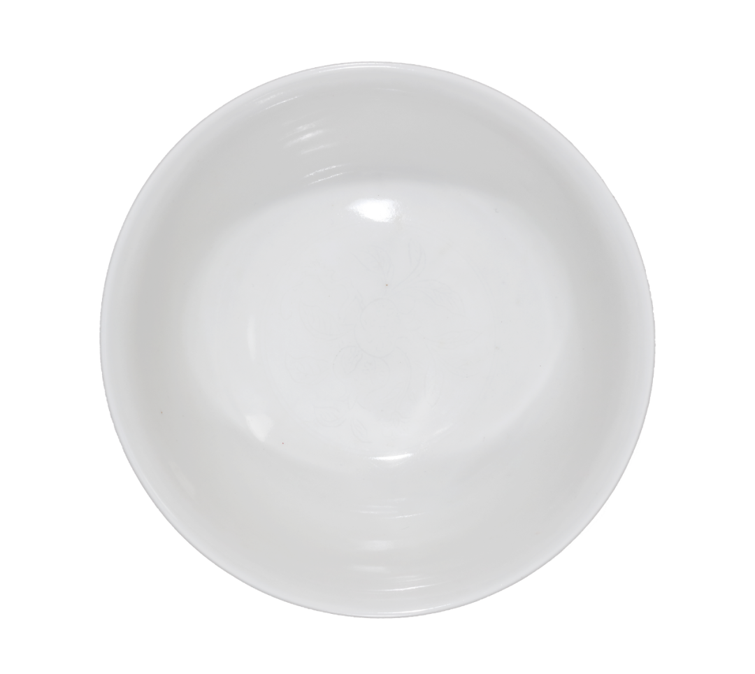 所谓“甜白”一语,最早见于万历十七年(公元1589年)王世懋的《窥天外乘》中记述:“永乐、宣德间,内府烧造,迄今为贵。其时以鬃眼甜白为常。”黄一正万历十九年所撰之《事物绀珠》,亦沿用了这一说法,同时赞美其釉色“白如凝脂,素犹积雪”。“甜白”又有“填白”之称谓。“填”为填加之意。似指甜白器上常用的锥刻细线花卉及锥拱模印云龙纹饰。