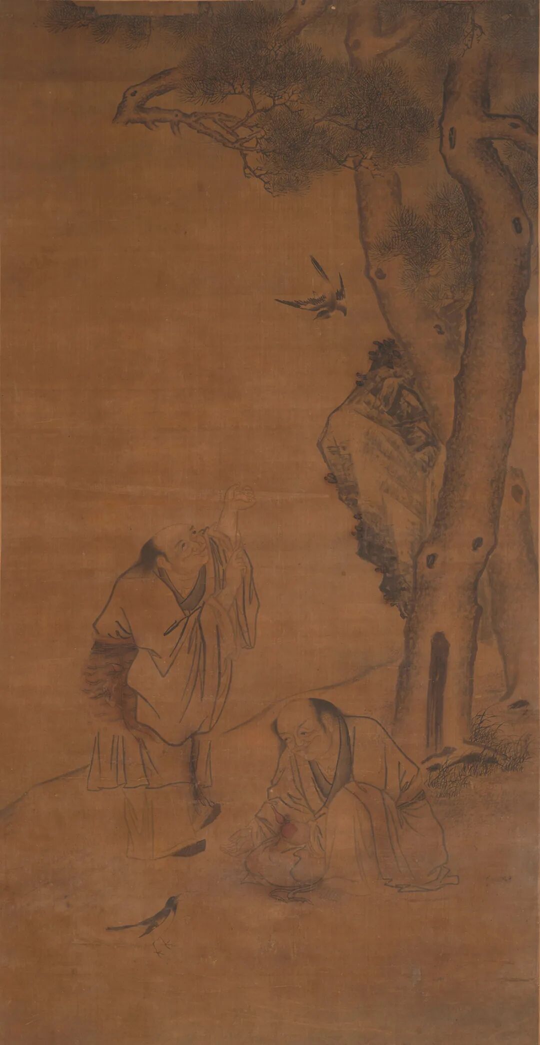题签:元人无款寒山拾得图。己亥三月梅簃属题,松安徐石汉上。钤印:老木。