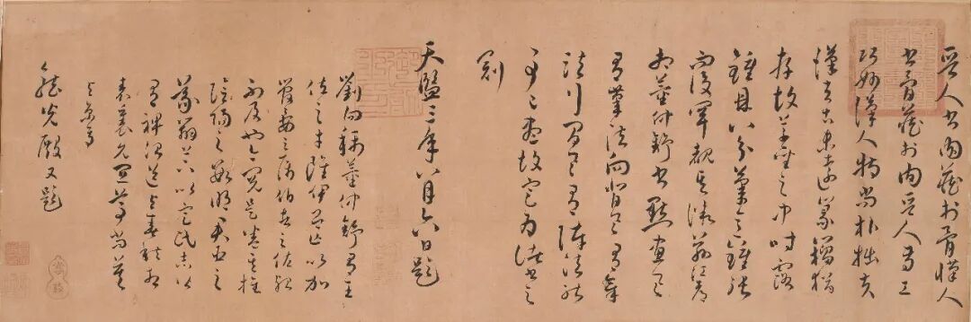 说明:上款谭组云。谭组云(1876-1949),名德钟、孝先,号高谭,皈依印光大师后,法名德备,晚号海陵老人。祖居江西南昌,后迁江苏海安镇,至其为11世。民国时期蜚声海上书坛,为我国近代杰出书法大家之一。藏印:清翠斋藏金石书画、光州徐氏家藏、元和陶衢珍藏、元和陶衢鉴赏之章作者简介:董其昌,字玄宰,号思白,又号香光居士,华亭(今上海市松江)人。明万历十六年进士,选庶吉士授编修,官至礼部尚书。谥文敏。少好书、画,临摹真迹。行楷之妙,跨绝一代。款识:1. 乾隆乙卯 (1795) 岁秋七月,仿白石翁笔意于碧梧轩。陆槐。钤印:槐印。2. 珠帘翠阁写歌鬟,点染园花玳瑁斑。世上丹青应让汝,独将枯笔貌苍颜。甲戌(1694) 为六纪道长兄题并画,弟李栋。钤印:阳山李栋吉四氏印。作者简介:1. 陆槐,字荫庭,号愚谷,江苏太仓人,陆愚卿从兄,山水摹王原祁,几欲乱真。2. 李栋,字吉士,亦作吉四,号松岚,他是李鱓的族叔。康熙壬午举人,候补内阁中书。为人丰颐厚体,粹品兼才,所著诗文甚富,又工绘事及篆隶,声震江淮间。款识:1. 天监三年八月六日题。2. 龙光殿又题。藏印:内府图书之印、御前之印、贾似道印、秋壑、悦生、商丘吴氏珍秘、赵氏子昂、天水郡图书印款识:东坡居士酒醉饭饱,倚于几上,清川左暎,白云右萦,重门洞开,林峦岔入。此时若有所思而无所思,以受万物之备,惭愧。临皋亭书。陈继儒。题跋:光绪壬寅 (1902) 初夏,刘鹗题识。钤印:刘鹗、铁云。作者简介:陈继儒,字仲醇,一字眉公,号糜公,华亭(今上海市松江)人。与同郡董其昌齐名。善写水墨梅、竹,能画山水,气韵空远。有《皇明书画史》、《眉公秘籍》、《书画金汤》等。作者简介:曹秀先,字恒听,又字芝田、冰持,号地山,江西南昌新建县人。清朝翰林,政治人物,文学家,书法家。为官清廉,人称“诚敬勤慎”。为《四库全书》馆总裁,乾隆帝曾特赐“紫禁城骑马”的特殊待遇。书法,取法钟、王,自成一家。