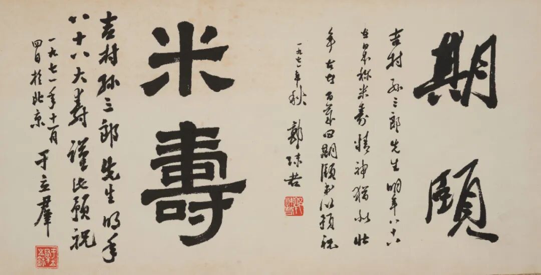 郭沫若(1892-1978)、于立群(1916-1979)书贺吉村小三郎米寿