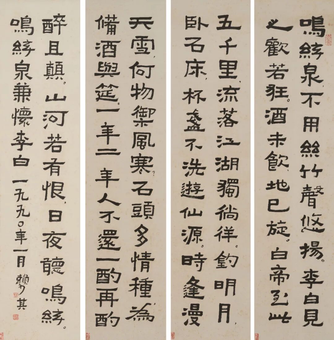 赖少其(1915-2000)书鸣弦泉四屏
