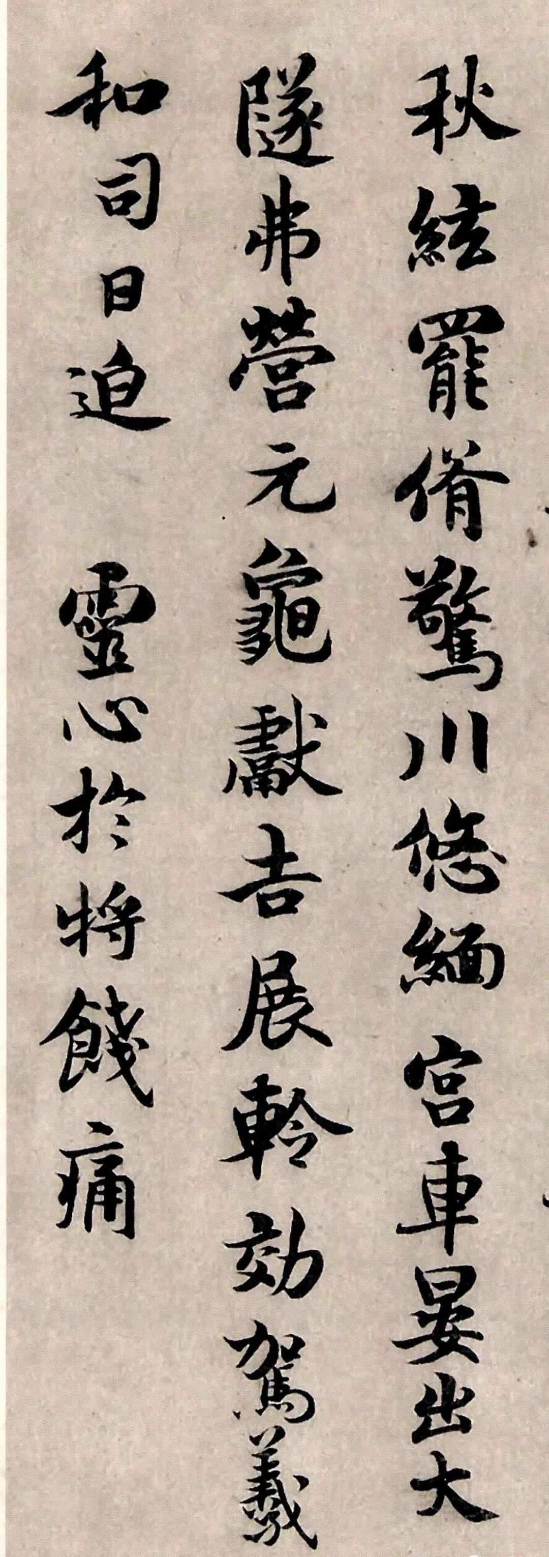 其书法之秀美之姿与典雅之态,就像是一位身穿华丽制服的美人一般,风姿绰约,连欧阳询和虞世南也比不上!褚遂良的这件《文皇哀册册页》,历来有拓本和墨迹两种,拓本刻工不甚佳,而墨迹本乃是宋人的双钩填墨本,完美再现了原作风貌,乃是书法学习的绝好法帖