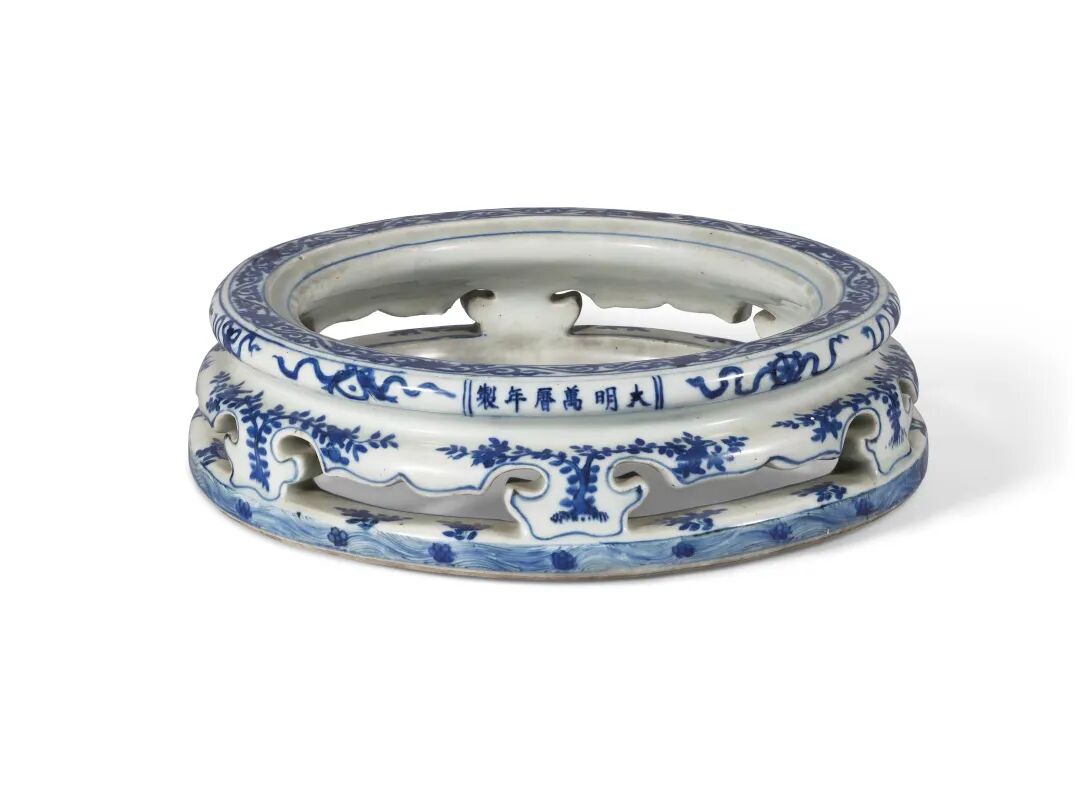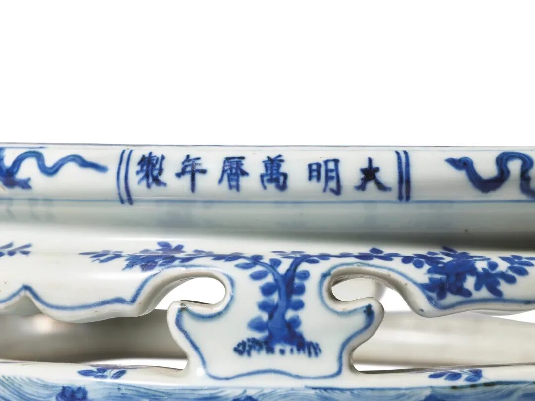 青花折枝花鸟纹镂空器座 六字楷书横款
