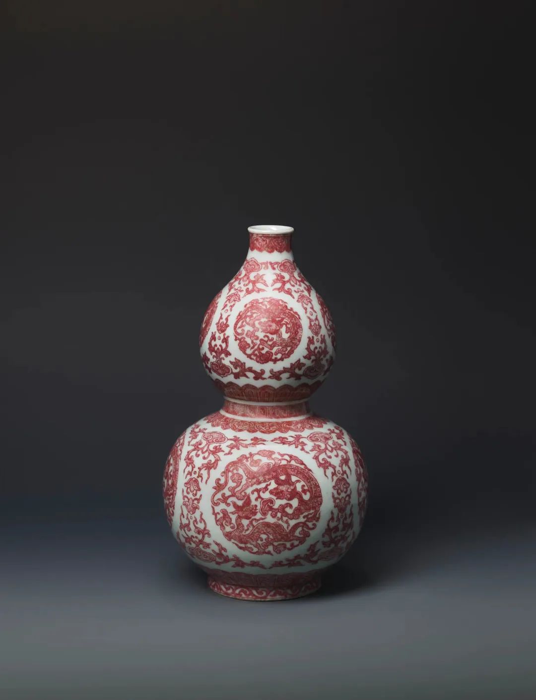 釉里红团花穿芝螭龙纹葫芦尊 六字篆书款