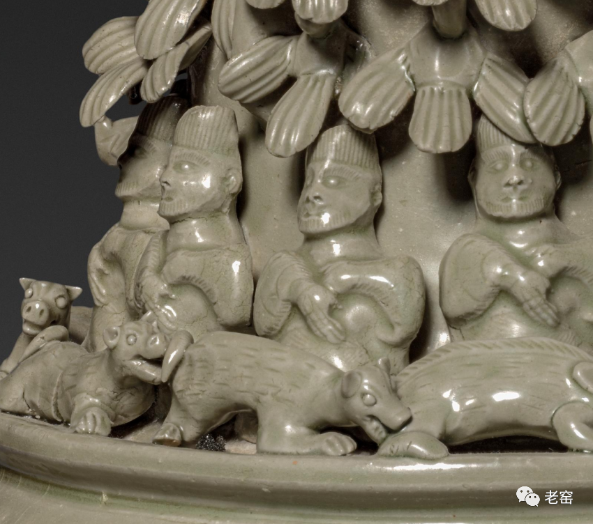 南宋龙泉窑堆塑螭龙五管瓶