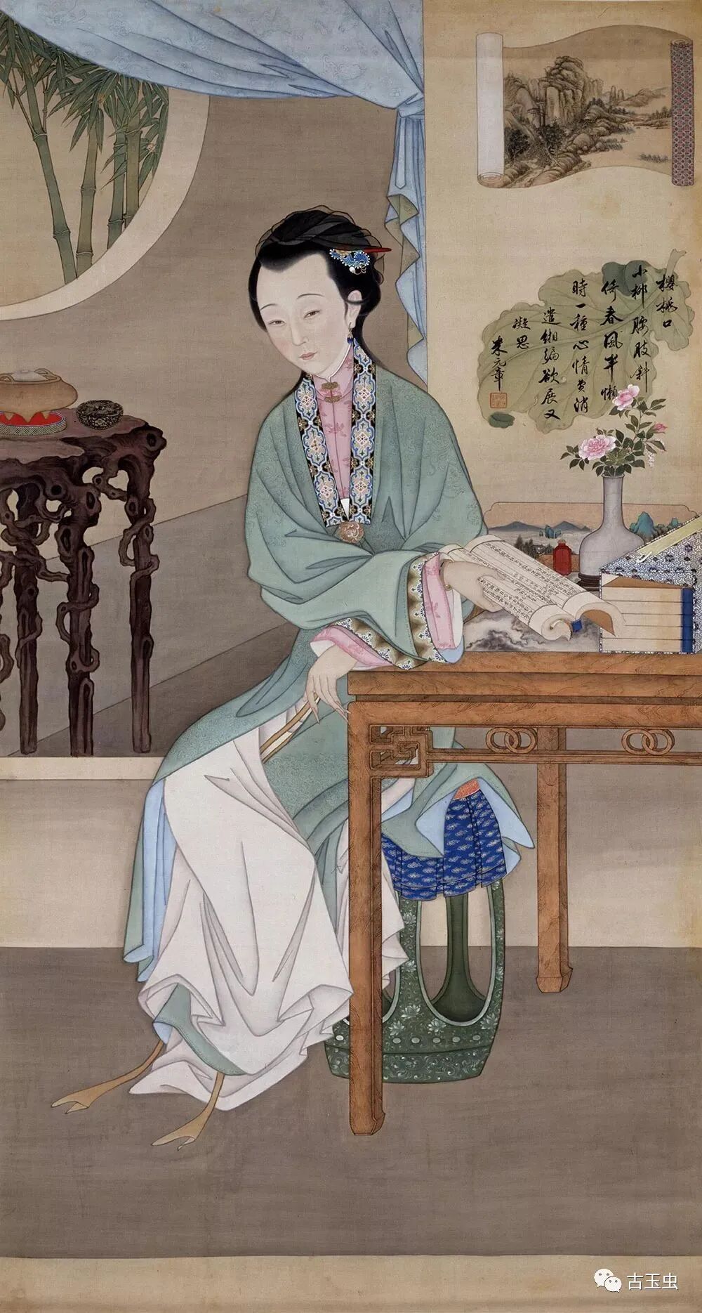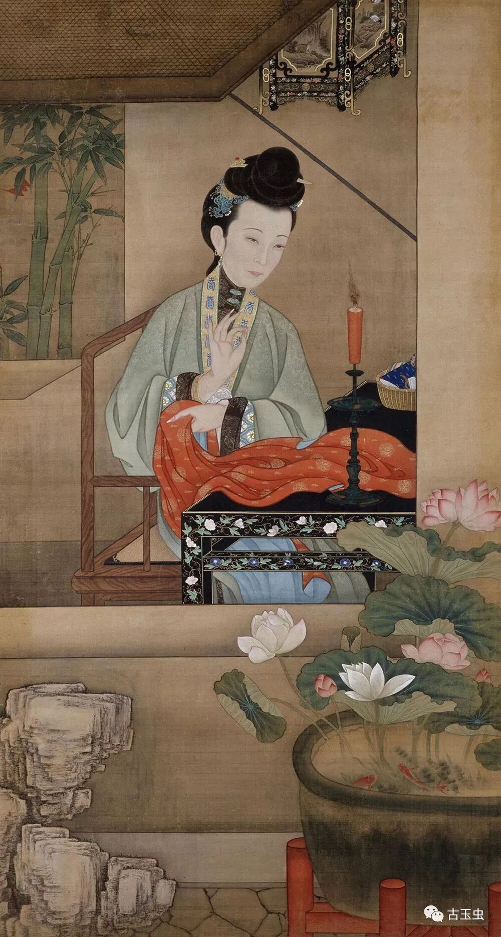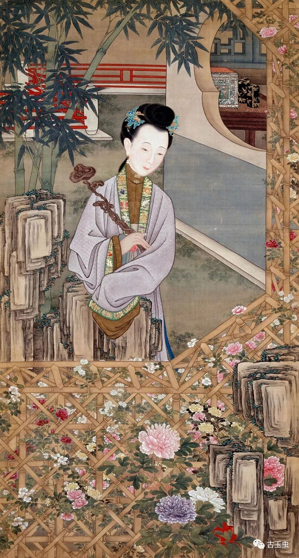而《雍正十二美人图》中,最珍贵的地方在于,一器一物无不精细入微,名花、箫、砚、纨扇、金炉、香合、古瓶、异香、菱花,字画,一一可究自是丰盛。