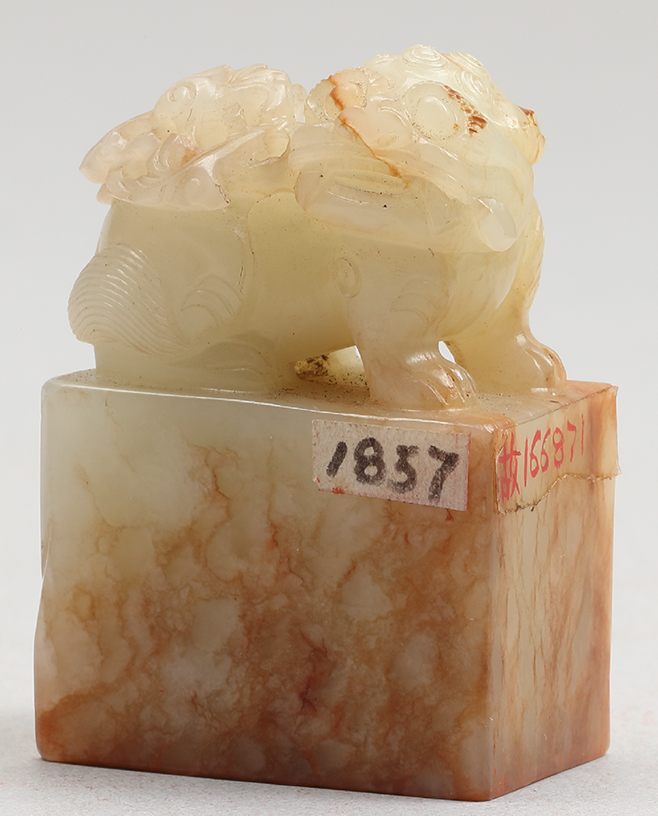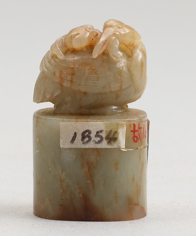 嘉庆十二律组印,青玉、白玉质地,纽式多样,为各种飞禽走兽,印文在《嘉庆宝薮》中有收录。