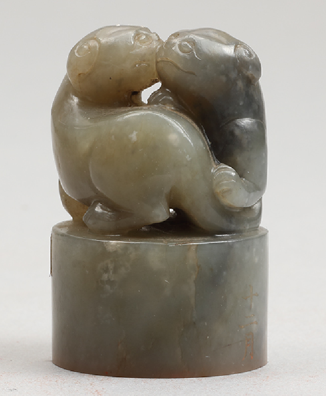 ▌青玉双熊纽“律中大吕”圆式印(十二月)