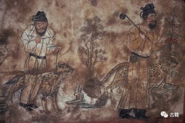 波斯人喜欢在封闭之地围猎,因此,想象唐高宗在上林苑猎豹。其实,上林苑是皇家公园,里面并没有野生的豹子。中国有华南豹、华北豹、东北豹,也有从西域进贡而来的豹子。在懿德太子墓甬道壁画里,可见胡奴牵着一头云豹,跟随着打猎的人群。豹子一般不是被打猎的对象,而是如同猎犬一样追逐野兽的捕猎助手。