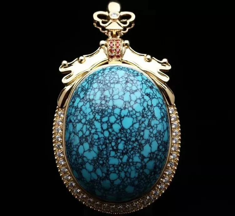 没有铁线的松石毛料称之为素料,这种少铁线的素料货源稀缺,做出来的东西也更干净好看,价格也会比铁线松高。所以说松石带不带铁线在的确是会影响它的价格。在一般情况下,同等品质大小,无铁线要比有铁线贵一些。但是这里也要说一个特殊的品种,这种松石虽然铁线多但是有一种别致的美,它就是“乌兰花”!大家注意了,并不是所有的铁线松都叫乌兰花,关于乌兰花也有两种解释。第一种解释:乌,指松石色调沉不张扬,大气沉稳。兰,即蓝色调。花,又称花子,即带铁线。之所以乌,是因为乌兰花铁线黑,向蓝色松肉部分逐渐扩散,由深到浅。高蓝高瓷,铁线成网或形成精美图案的的乌兰花为顶级。第二种解释:乌兰花,乌是指蓝得发乌,兰花就是兰花,不可拆开解释,就是植物界的兰花,整体意思就是指蓝的发乌像一簇兰花一样的松石,这个名称是20多年前几位松石届的商家在一起讨论这种松石的时候,在一起琢磨出来的名称,当时所有人一起拍案叫绝!部分商家一看松石铁线多就打着“乌兰花”的名声卖高价,不是松石铁线一多就就叫做乌兰花!大家看下面三张图片,感受下真正的乌兰花。![]()