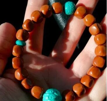 油质充足、皮质细腻,盘红周期短,3个月就能盘红,不到一年就能红透透的。搭配南红、绿松石、药师珠等等,都很出效果。