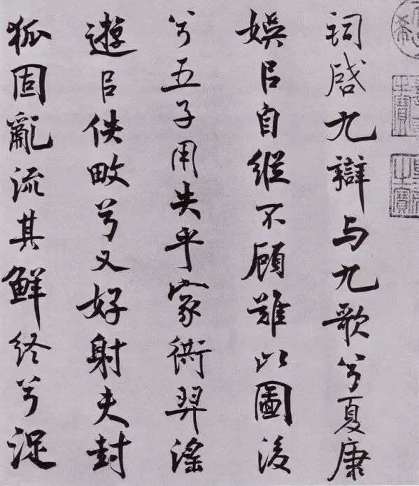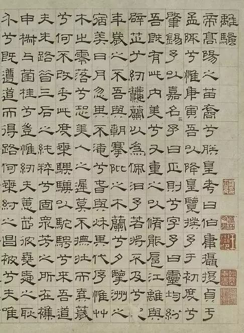 元代吴叡37岁书写隶书离骚,行笔结体老到稳健,布局精微,结构别致,法度严谨,字字不苟,是一件流传有序的佳作,但古朴不足。