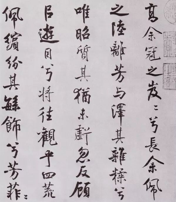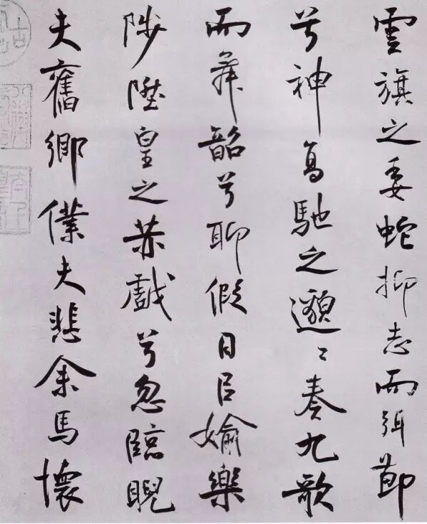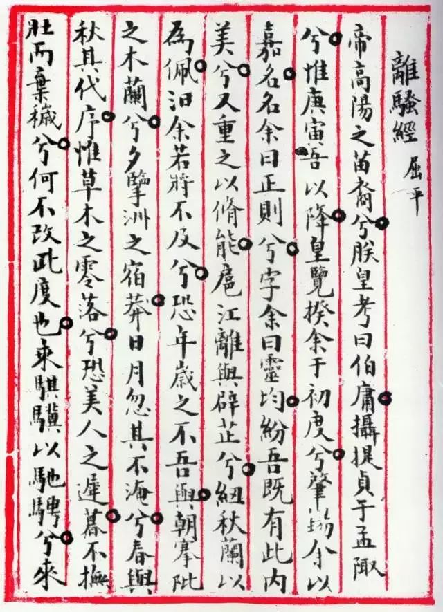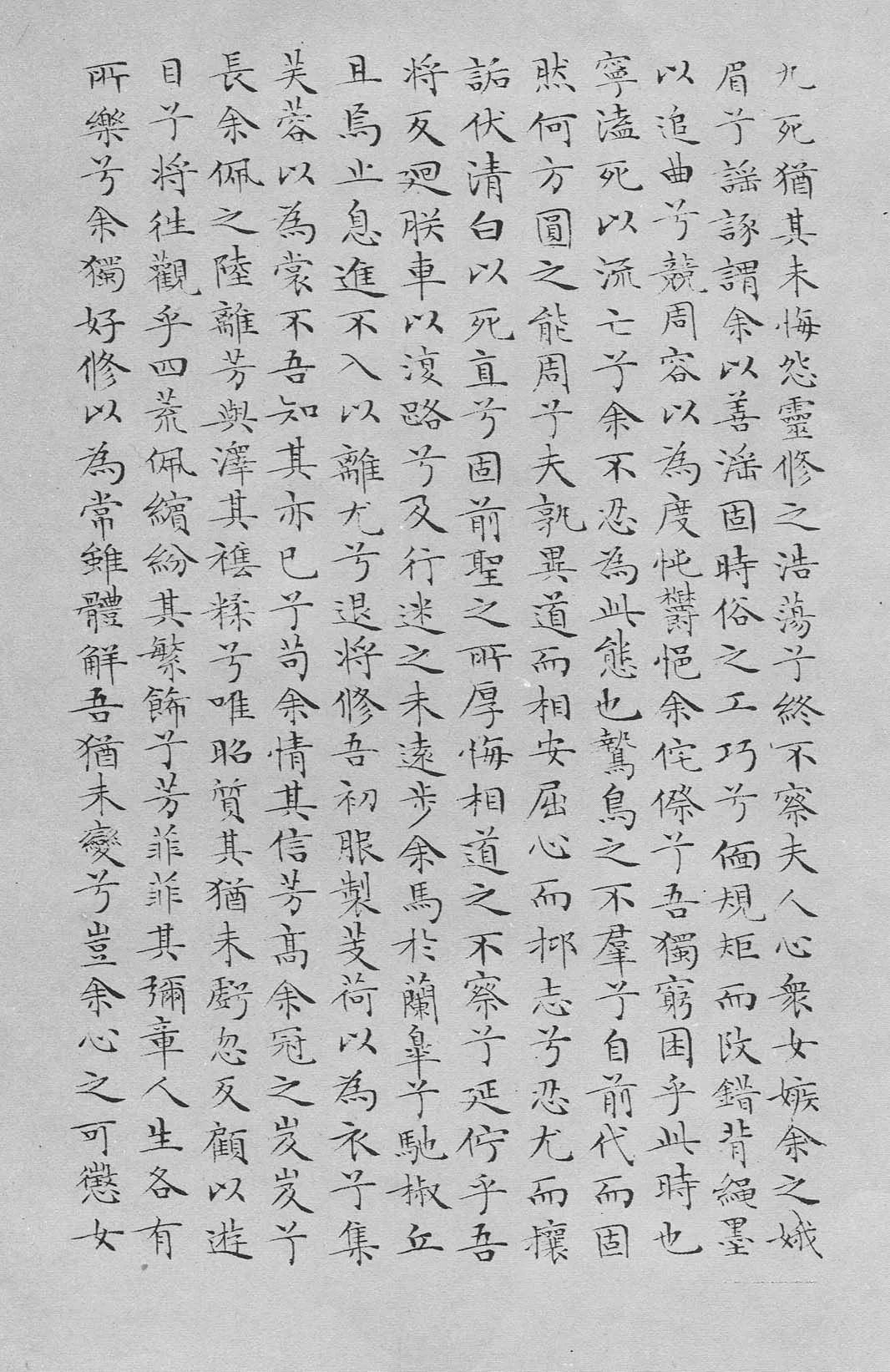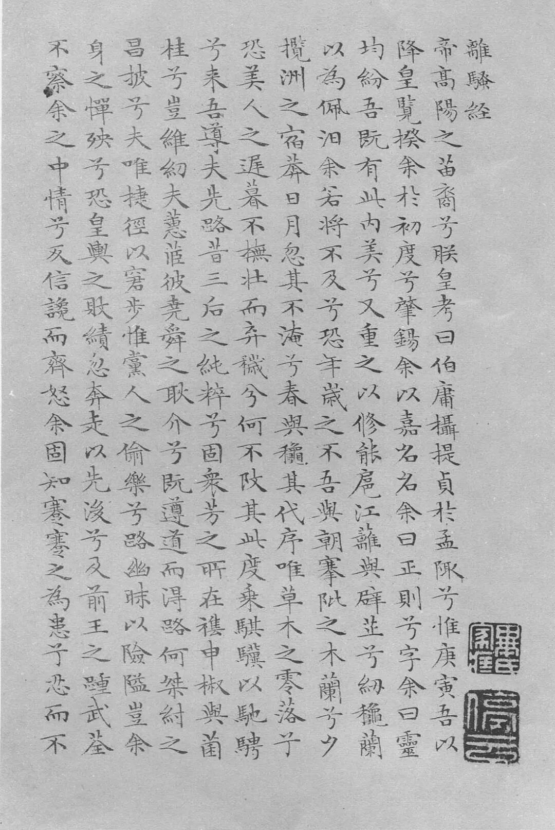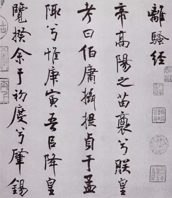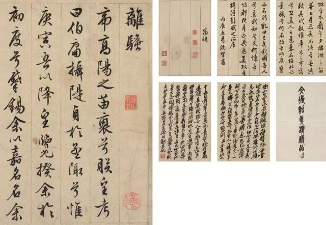 文征明书屈原《离骚》,纸本,总计248行,2476字。卷末署“嘉靖乙卯二月既望”为文征明86岁晚年书法作品。此卷一气呵成,精妙清新,流畅之至,毫无疲倦之意,令人赞叹。