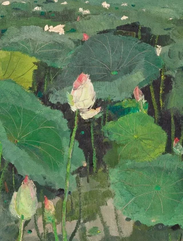 而长约4米的《荷塘》在尺幅上比《周庄》更为宏大,对于1997年当时已经78岁高龄的吴冠中来说,这样大尺幅的创作并非易事,因此对他来说这也是一种突破自我的象征。