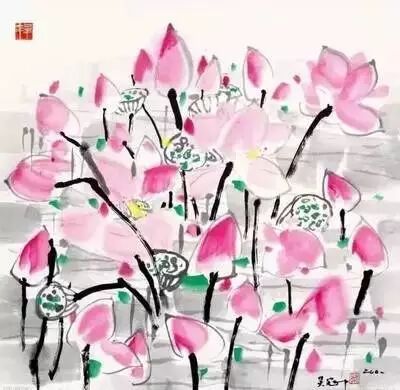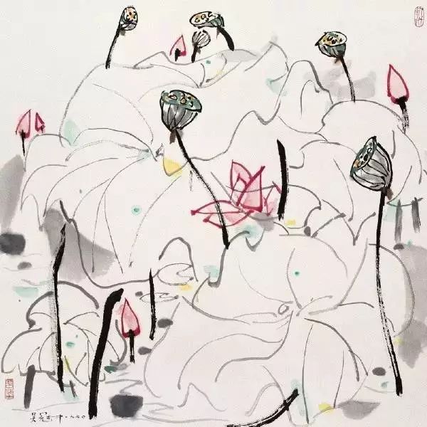 吴冠中荷花作品欣赏: