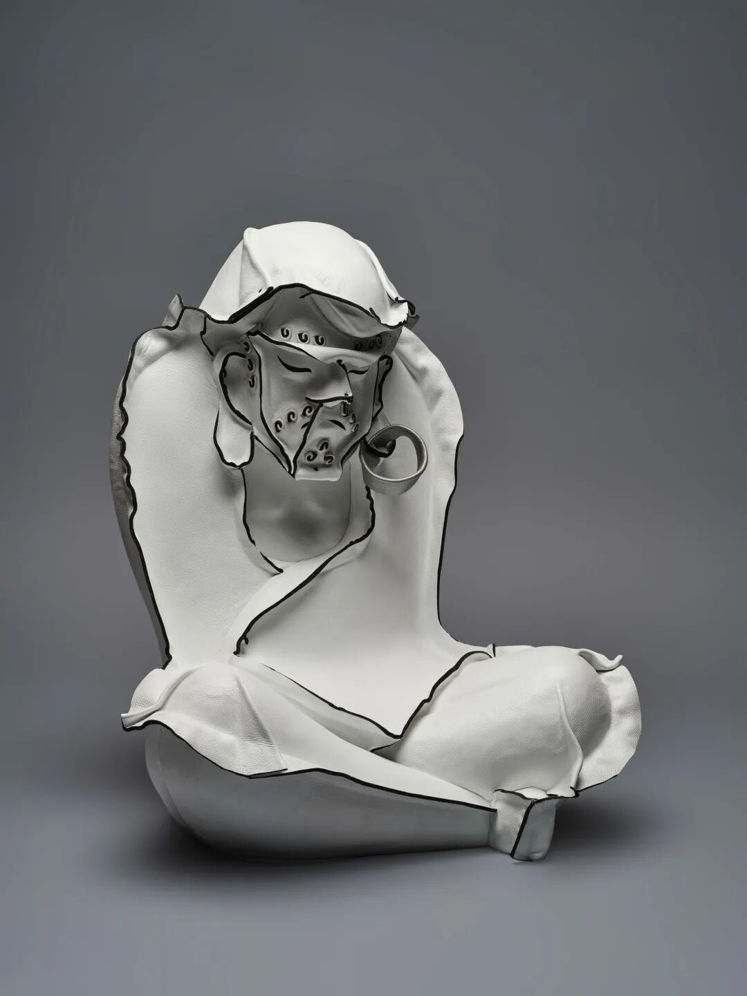 我把动物皮拿来做人物,也是想用艺术的方式尝试表现一种生命的轮回,这种对皮的利用是表层的,我的兴趣点是对这一层“皮囊”的表现。作为雕塑的材料,皮质本身的生命感既是生命结束后的物质留存,也是生命永恒的见证。