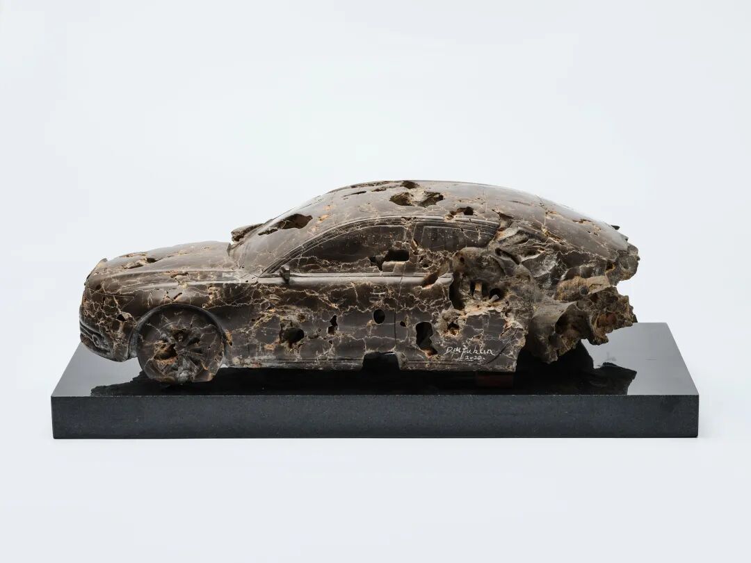 作品带有某种波普艺术的性质,分别表现出鲜明的问题意识。将材料进行了转换,给予现成物一种神秘且陌生的视觉感,那些遍布在此类体中的凝重气息,连同磨损、风化等塑造痕迹,表现出他对于“缺憾感”的物化呈现。