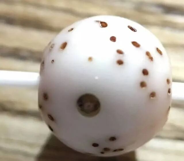 3、海南料的星眼分布,在珠子的局部位置会明显比其他位置要密,且呈现散射状特点;而老挝料则不具备这一特点。