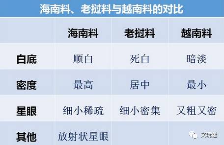 与海南料相比,越南料有以下几个典型的特征: