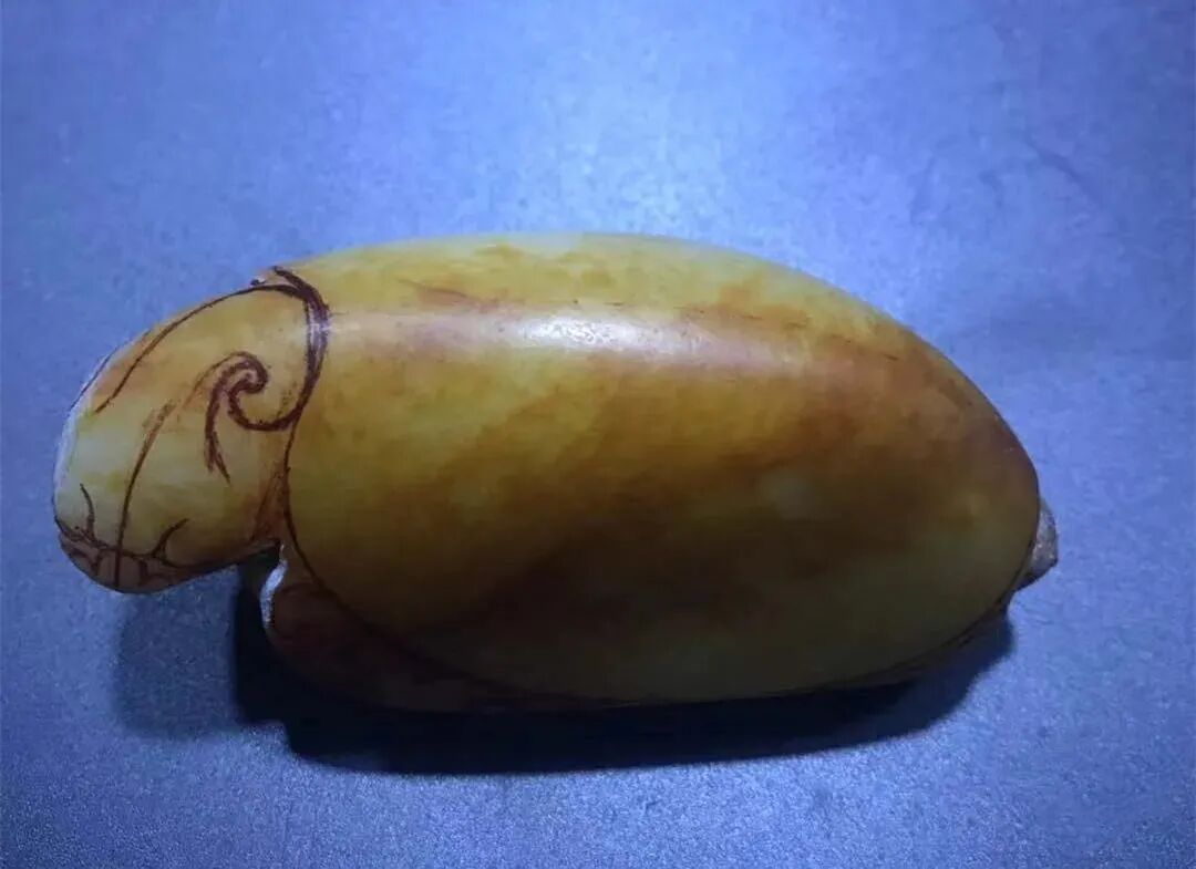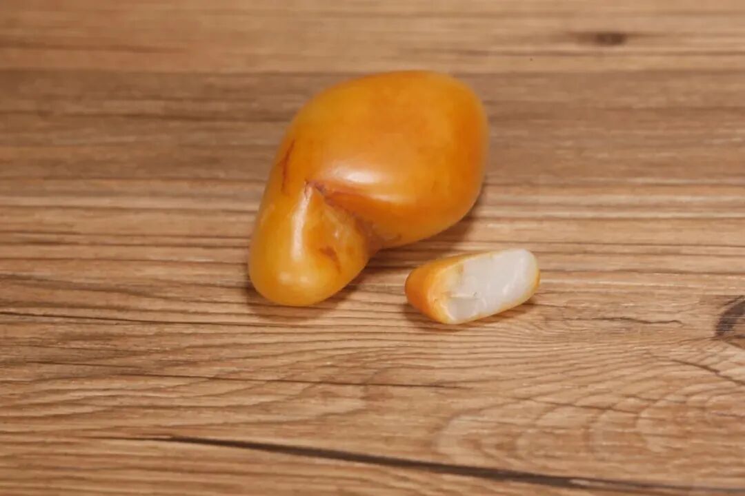 就跟切料是一个道理,料子切薄了就会容易水,料子厚就会显得厚重一些。一般的玩家看真假主要看毛孔和皮色,而对老些老手来说,看一眼外形就能基本就能判断出,是不是在滚筒里滚过,是不是修过型。形状是一个并不太好说明的点,但它很多时候却是一个极为重要的点。因为造假可以模仿各种,但就是那种天然的外形是怎么也模仿不来的!这种天然的断面就是一个很好的防伪标签,断面有皮色,而且断面很天然,这种天然的断面是造假模仿不出来的。天然的形状就是籽料的一种价值,而这种价值在山料上比较稀缺。除了皮色和玉质之外,在挑选籽料的时候,外形请你务必多看一眼。