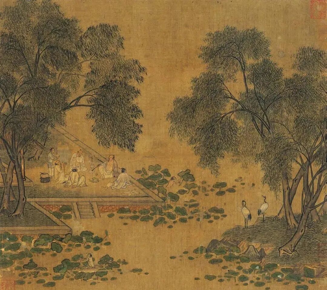 夏天文人:往往风亭水榭.峻宇高楼.云槛冰盘.浮瓜沈李.流杯曲沼.苞鲊新荷.远迩笙歌.通夕而罢。人们或凉亭水榭或高堂华屋里品尝冰镇瓜果,观荷花游鱼,听笙歌燕舞。