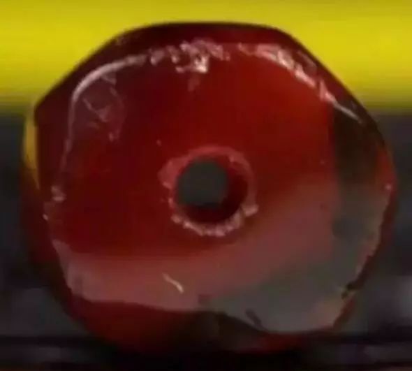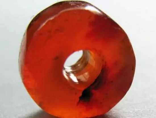 所谓里子,就是看孔道。真品西周玛瑙由于穿绳的来回滑动摩擦,孔道内壁如水波一般,熠熠生辉,而仿品则干涩无光(鉴定要点)。